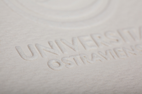 Ukázky výsekových složek na firemní materiály, použití ražby a ručního papíru.